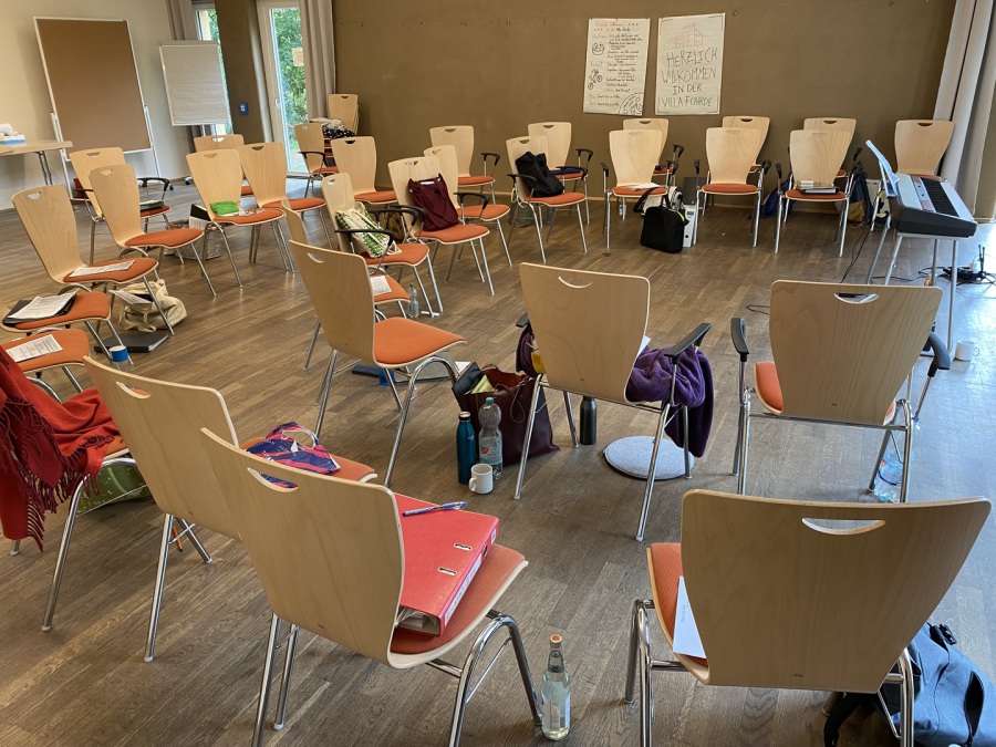 ... trotzdem und erst recht, Dank moderner Technik und einem Chorleiter, der es immer wieder geschafft hat, uns notfalls auch online bestens bei Laune zu halten. Bei passendem Wetter gabs viel Platz für Livesingen auf der großen Wiese. Bei Sturm und Hagel fanden wir uns mit Hygienekonzept live und in Farbe in unserem Probenraum.